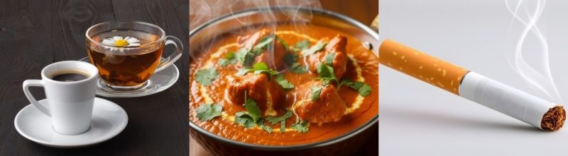 • Cà phê, trà, rượu vang đỏ, nước ngọt sậm màu