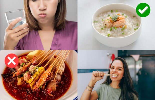 Ăn thức ăn mềm, tránh đồ nóng, cay hoặc cứng.