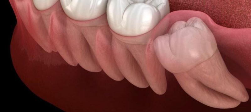 1. Răng khôn mọc lệch tạo khe kẹt thức ăn