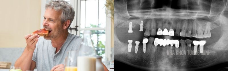 Hai trụ Implant giúp phân bố lực đều, ăn nhai chắc chắn và ổn định như răng thật.