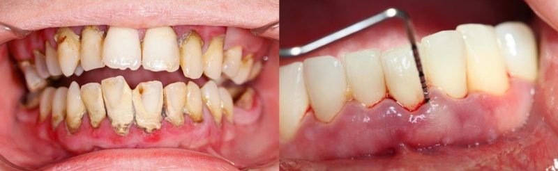 - Dấu hiệu: nướu tụt, răng lung lay, có mủ, hôi miệng